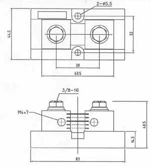 DC AMMETER SHORT SHUNT (2/3) Application: Use with a DC Ammeter with 50mV To extend the DC current measuring range from 200A to 500A.. * Not used for continuous current loading Accuracy: 1.0% of rated value. DIMENSIONS (Unit : mm) for 200A/50mV, 300A/50mV, 400A/50mV, 500A/50mV
