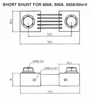 DC AMMETER SHORT SHUNT* (3/3) Application: Use with a DC Ammeter with 60mV To extend the DC current measuring range from 400A to 600A. * Not used for continuous current loading Accuracy: 1.0% of rated value. Present short shunt -- for 400A/60mV, 500A/60mV, 600A/60mV